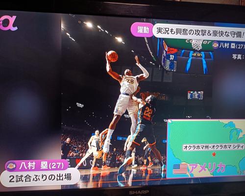 八村塁選手、攻守にわたり躍動!! 11得点、1アシスト、7リバウンド レイカーズ126-99サンダー 6日、オクラホマシティ |