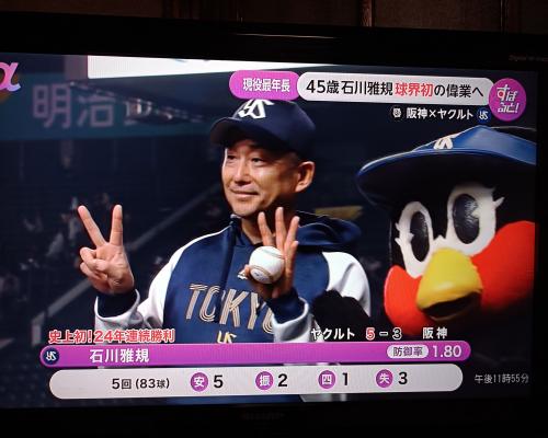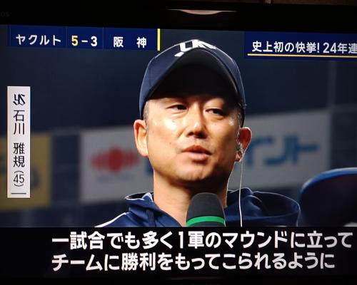石川雅紀投手、24年連続勝利!!史上初!! 45歳、現役最年長 阪神3−5ヤクルト 9日、甲子園 |