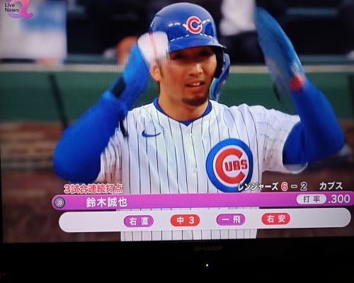 鈴木誠也選手、4打数2安打!!3試合連続打点!! レンジャーズ6−2カブス 9日 |