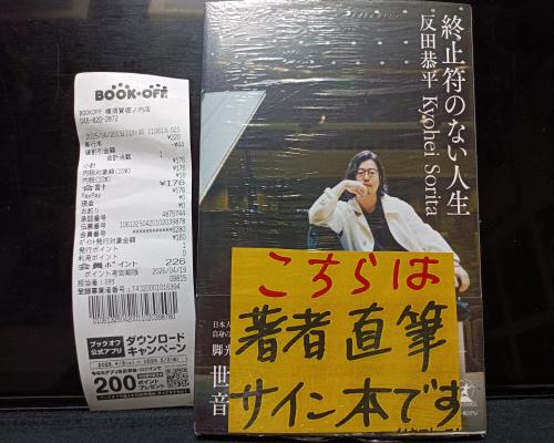 ブックオフで2021年ショパンコンクール2位。反田恭平さんの著書「 終止符のない人生」 著者直筆サイン本 を信じられない超価格で購入させていただきました。 |