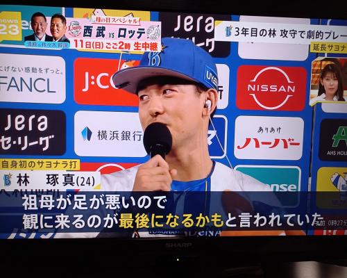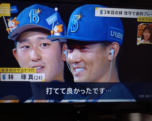 林琢真選手、感動のヒーローインタビュー!!お立ち台!! ベイスターズ4−3広島 9日、横浜スタジアム |
