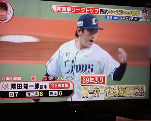 隅田知一郎投手、快投!7回を8奪三振!!無失点!! リーグトップの5勝目!! 西武10―0ロッテ 11日、ベルーナドーム |