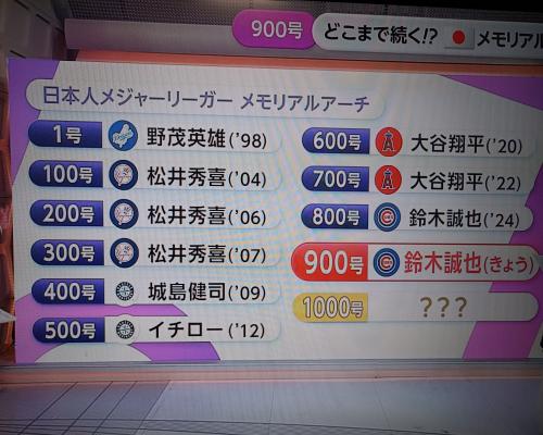 鈴木誠也選手、日本人900号!! カブス5-2マーリンズ 12日 鈴木誠也選手の今シーズン10号ホームランで日本人900号!! ![]() ![]() 節目のメモリアルアーチは偉大な先人たちばかりです。 |