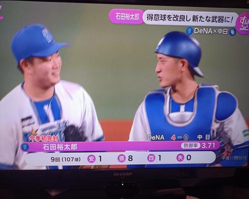 石田裕太郎投手、今シーズン初完封!! 中日打線を1安打完封!! DeNA4-0中日 22日、横浜スタジアム |