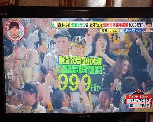 近本光司選手、通算1000安打達成!! 阪神8−2オリックス 7日、甲子園 |