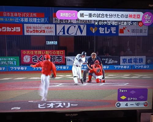 7回裏、神の左手!! マリーンズ・藤原恭大選手 技あり神ヘッドスライディングで勝ち越しに大成功!!12日 、千葉ロッテマリーンズ ― 広島東洋カープ |