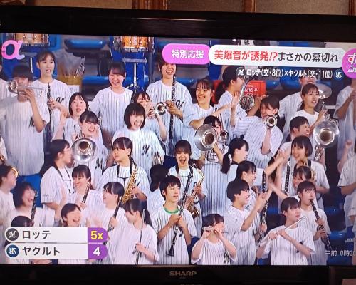 吹奏楽の超名門、習志野高校吹奏楽部、千葉ロッテマリーンズの特別応援!! 美爆音炸裂!!で劇的な幕切れ誘発!? ロッテ5☓―4ヤクルト 13日、ZOZOマリン 高校吹奏楽の超名門、習志野高校吹奏楽部が千葉ロッテマリーンズの特別応援!! 美爆音炸裂!! ![]() ![]() 習志野高校、野球部出身の池田来翔選手のツーベースヒット!! ![]() ![]() 4-4の同点の9回裏ロッテの攻撃1アウト2塁3塁でなんとワイルドピッチ!! 劇的サヨナラ!!ロッテが勝利!! ![]() ![]() 習志野高校吹奏楽部の美爆音はZOZOマリンのロッテファン、ヤクルトファンを魅了し圧倒しただけでなく、ロッテ、ヤクルトの選手、監督、コーチ、裏方の方々などすべての野球ファン、吹奏楽ファン、吹奏楽を知らない方々すべてを魅了したことでしょう。 |