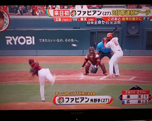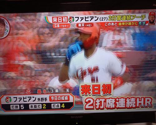 ファビアン選手、2打席連続ホームラン!! 広島8−3楽天 21日、マツダスタジアム |