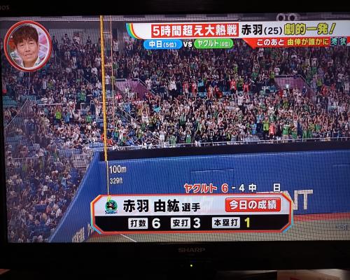 赤羽由紘選手、劇的2ランホームラン!! 中日4−6ヤクルト 5日、ナゴヤドーム |