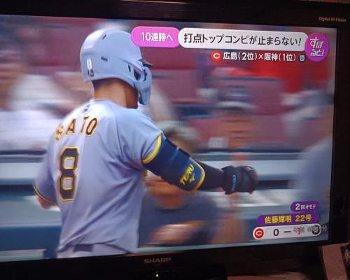 佐藤輝明選手、22号ホームラン!! 広島―阪神 9日、マツダスタジアム 2回表、今シーズン、セ・リーグホームランと打点の2冠の佐藤輝明選手 ライトへ大きな当たり!! ![]() ライトスタンドへ!! ![]() ![]() 22号ソロホームラン!! |