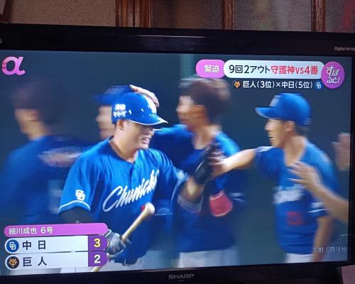 細川成也選手、絶対的守護神マルティネス投手から逆転3ランホームラン!!! 巨人3−2中日 9日、山形 |