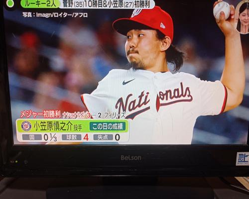 小笠原慎之介投手、MLB初勝利!! ナショナルズ3−2フィリーズ 13日、ナショナルズパーク |