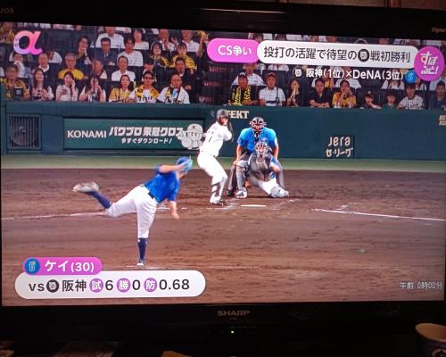 ケイ投手、8勝目!!阪神打線を7回3安打無失点!! 阪神0―3DeNA 9日、甲子園 |