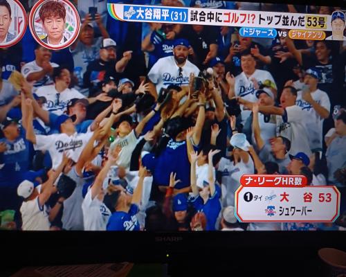 大谷翔平選手、 53号ホームラン!! ナ・リーグホームラン争いトップタイ!! ドジャース―ジャイアンツ 20日、ドジャースタジアム |