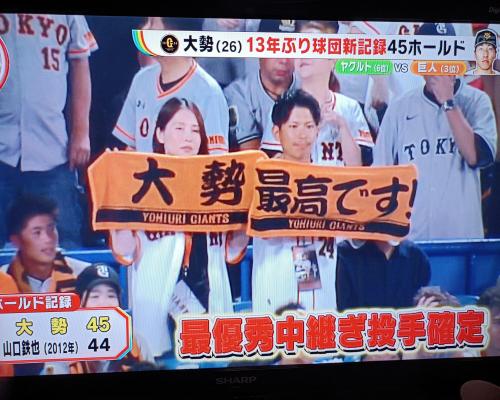大勢投手、45ホールド!!13年ぶり球団新記録!! ヤクルト―巨人 28日、神宮 |