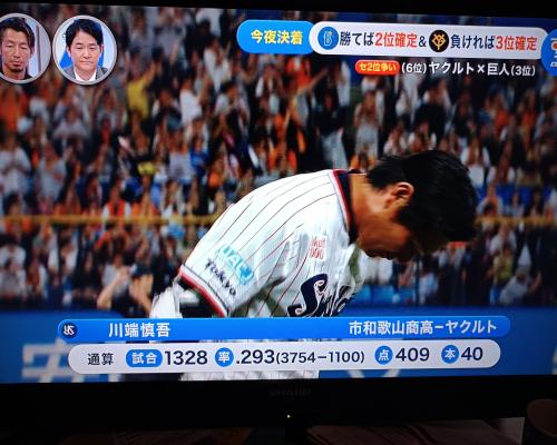 ヤクルト一筋20年 川端慎吾選手、最後の打席 ヤクルト―巨人 28日、神宮 今シーズン限りで引退の川端慎吾選手、最後の打席 左中間へ ![]() ![]() レフトフライでした ![]() 川端慎吾選手 通算 試合1328 打率.293(3754−1100) 打点409 ホームラン40 ヤクルトファンに愛された素晴らしい選手!! |