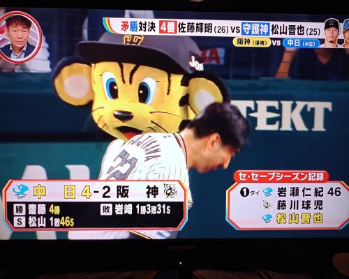 松山晋也投手、セ・リーグセーブシーズン記錄46!!歴代1位タイ!! 阪神2−4中日 28日、甲子園 |