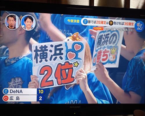 ベイスターズ2位確定!! 広島2―10DeNA 28日、マツダスタジアム ベイスターズが敵地で2―10で広島に勝利!! ![]() ![]() 2位確定!! クライマックスシリーズはハマスタで巨人と!! |