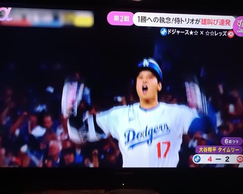 大谷翔平選手、タイムリーヒット!! ドジャース―レッズ ワイルドカード第2戦 1日、ドジャースタジアム ドジャース1点リードの6回裏1アウト1塁3塁で大谷翔平選手 ライトへ鋭い当たり!! ![]() ライト前タイムリーヒット!! ![]() ![]() 3塁ランナーが帰り4−2としました。 |