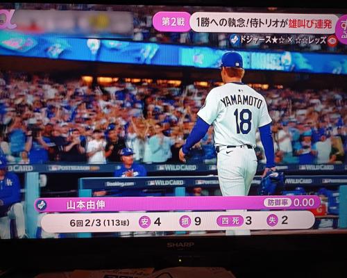 山本由伸投手、好投!! ドジャース―レッズ ワイルドカード第2戦 1日、ドジャースタジアム |