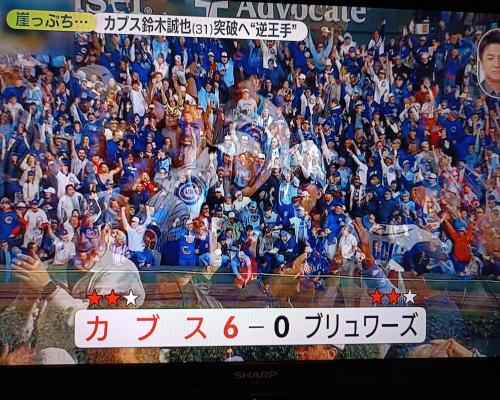 カブスが逆王手!! ナ・リーグ地区シリーズ第4戦 カブス6―0ブルワーズ 9日リグレー・フィールド |