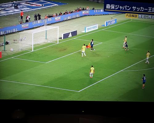 日本代表の1点目 南野拓実選手、ゴール!! 後半7分 日本代表1−2ブラジル 14日、東京スタジアム |
