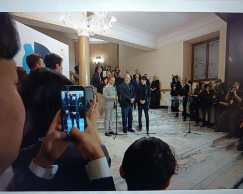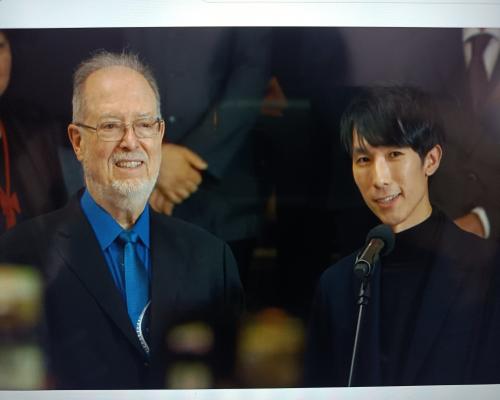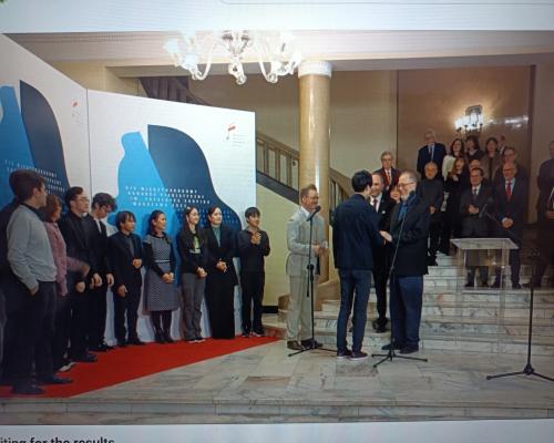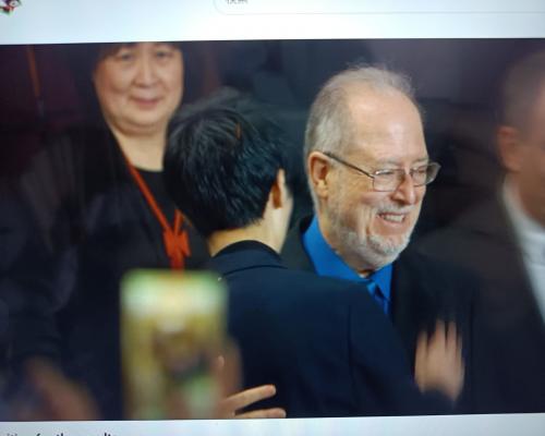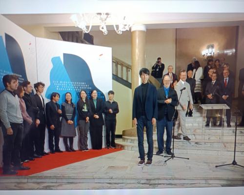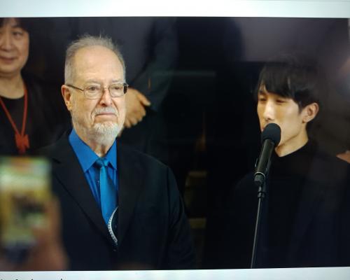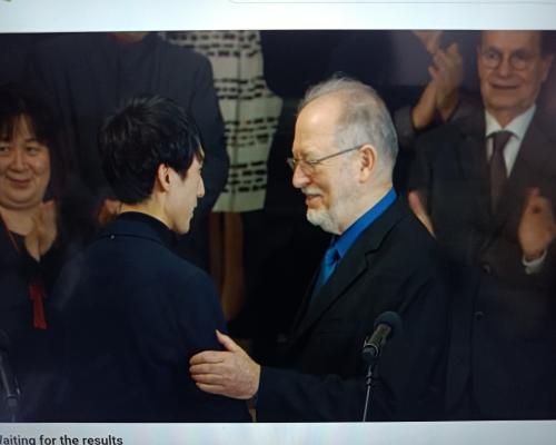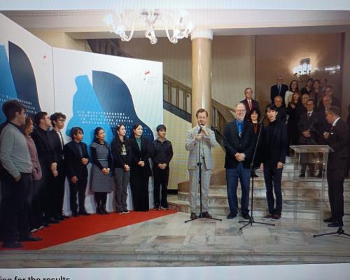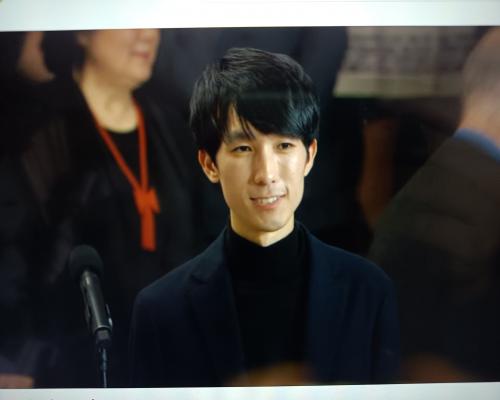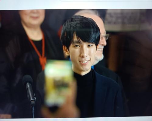 優勝されたエリック・ルーさん(アメリカ)のスピーチの模様 第19回ショパン国際ピアノコンクール 21日、ポーランド、ワルシャワ |