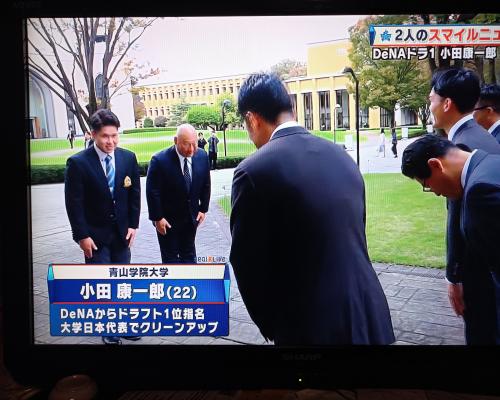 ベイスターズのドラフト1位 小田康一郎選手(青山学院大学)に 相川亮二新監督が指名挨拶!! |