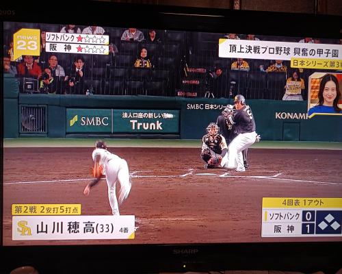 山川穂高選手、ソロホームラン!!日本シリーズ2号!! 日本シリーズ第3戦 阪神―ソフトバンク 28日、甲子園 阪神1点リードの4回表ソフトバンクの攻撃、1アウトランナーなしで山川穂高選手 ![]() センターへ大きな当たり!! ![]() バックスクリーン左へソロホームラン!!日本シリーズ2号!! ![]() |