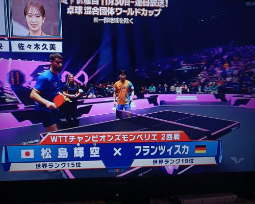 松島輝空選手、準々決勝進出!! WTTチャンピオンズモンペリエ 2回戦 松島輝空3−1フランツィスカ |