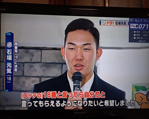 石垣元気投手、背番号は18!! |