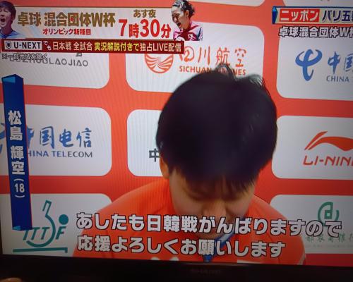 5日は韓国戦!! 卓球混合団体ワールドカップ ![]() 松島輝空選手のインタビュー ![]() |