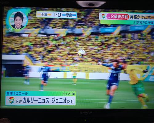 後半24分、FWカルリーニョスジュニオ選手の先制ゴール!! J1昇格プレーオフ決勝 ジェフ千葉―徳島ヴォルティス 13日、フクダ電子アリーナ ![]() 右からのアーリークロス ![]() ![]() カルリーニョス ジュニオ選手のヘディング!! ![]() ゴール!! 素晴らしいヘディングシュート!! ジェフ千葉先制!! |