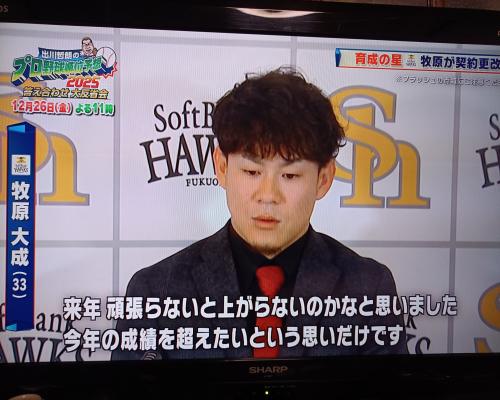 ソフトバンク牧原大成選手が契約更改 5000万円アップの 1億5000万円(推定)+出来高 |