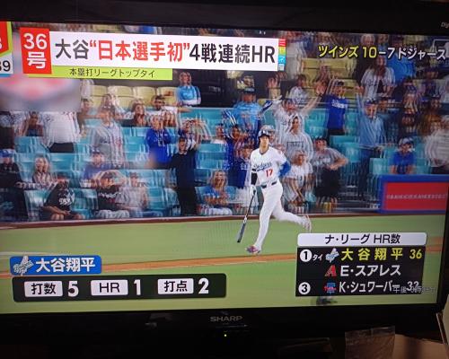 大谷翔平選手、36号ホームラン!! 4試合連続ホームラン!!日本選手初!! ドジャース7−10ツインズ 22日、ドジャースタジアム