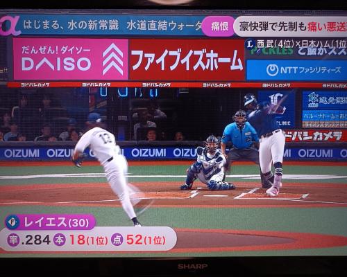 レイエス選手、19号ホームラン!! 西武―日ハム 17日、ベルーナドーム