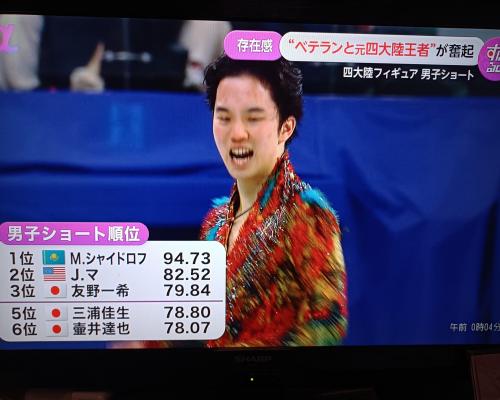 フィギュアスケートの四大陸選手権が20日、韓国ソウルで開幕。男子ショートプログラム(SP)が行われ、ミハイル・シャイドロフ(カザフスタン)が94・73点で首位に立った。地元韓国のエース車俊煥選手が79・24点で4位。