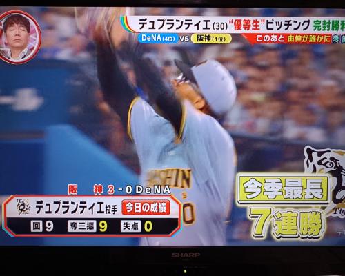 デュプランティエ投手、完封!!9奪三振!!7連勝!! DeNA0−3阪神 5日、横浜スタジアム