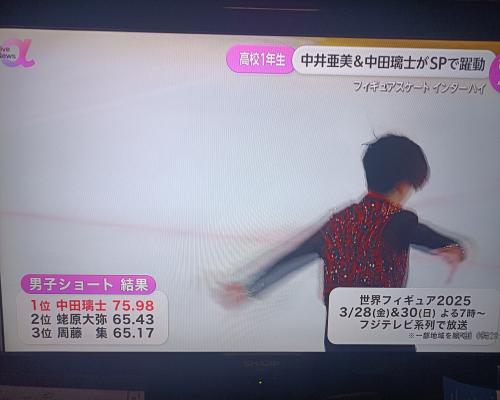 中田璃士選手、ショート首位発進!! フィギュアスケート インターハイ 男子ショート