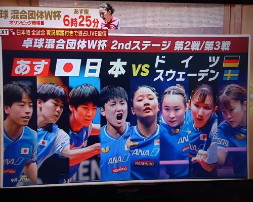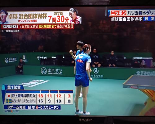 4日はダブルヘッダー!! 2試合目はスウェーデン 卓球混合団体ワールドカップ 第2ステージ第2試合 日本―スウェーデン 中国 成都