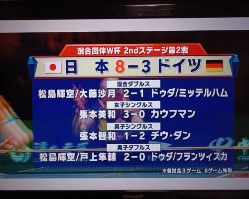卓球混合団体ワールドカップ 第2ステージ第2戦 日本8−3ドイツ 4日、中国 成都