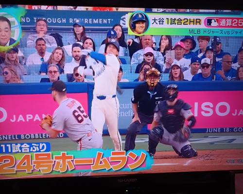 大谷翔平選手、24号ホームラン!!11試合ぶり ドジャース―ジャイアンツ 14日、ドジャースタジアム