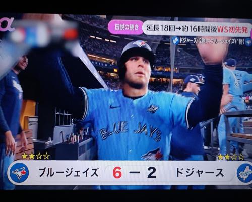 ブルージェイズが勝利!! ワールドシリーズ第4戦 ドジャース2−6ブルージェイズ 28日、ドジャースタジアム