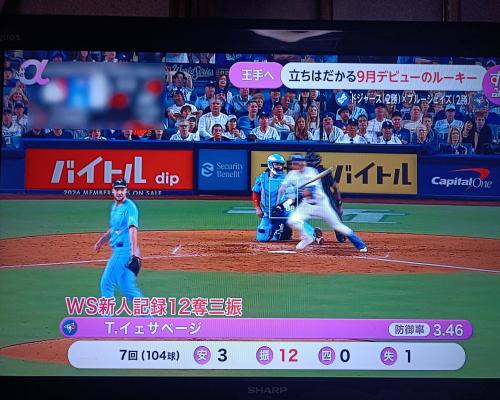 イェサベージ投手(ブルージェイズ)、12奪三振はワールドシリーズ新人記錄!! 7回104球、被安打3、奪三振12、四死球0、1失点!! ワールドシリーズ第5戦 ドジャース―ブルージェイズ 29日、ドジャースタジアム