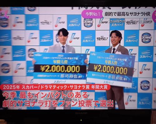 2025年スカパー!ドラマチック・サヨナラ賞 年間大賞 郡司裕也選手と赤羽由紘選手