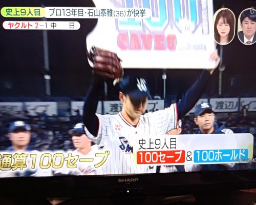 プロ13年目ヤクルト石山泰稚投手快挙!!通算100セーブ!!100ホールド!! 史上9人目 ヤクルト2−1中日 (27日、神宮)