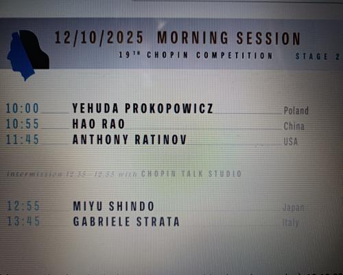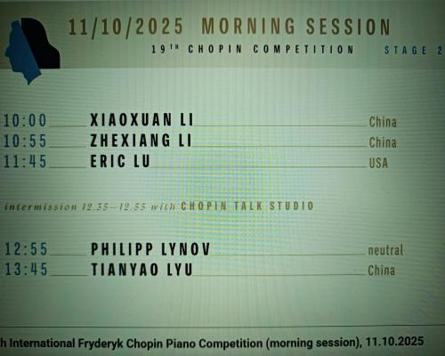 第19回ショパン国際ピアノコンクール 第二次予選 、3日目 午前の部 のコンペティターとプログラム 注目のエリック・ルーさん、フィリップ・リノフさん登場!!現地時間11日午前10時 日本時間11日午後5時