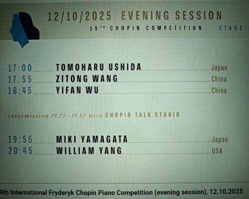 第19回ショパン国際ピアノコンクール 第二次予選 、最終日4日目 午後の部 のコンペティターとプログラム 大変注目の2人、牛田智大さん!!山縣美季さん登場!!現地時間12日午後5時 日本時間13日午前0時