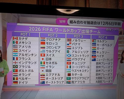 2026年FIFA北中米ワールドカップ 組み合わせ抽選会は日本時間12月6日、午前2時 |