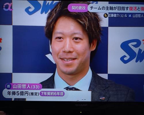 山田哲人選手、年俸5億円 7年契約6年目